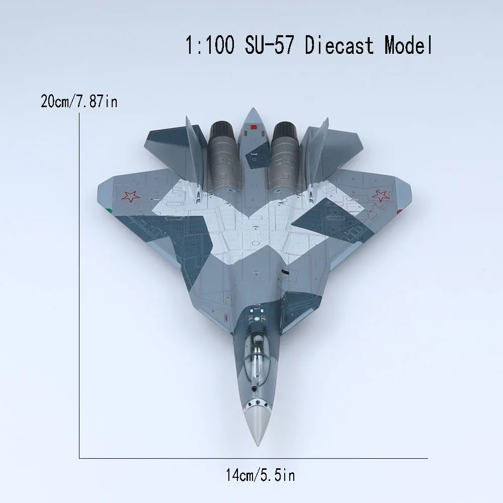 Introducing the meticulously crafted 1/100 Scale Su-57 Die-cast Aircraft Plane Metal Model, a must-have for any avid military enthusiast or diecast model collector. This captivating camouflage fighter jet model captures the essence of modern aviation excellence, making it an extraordinary piece for your diecast airplane model collection.