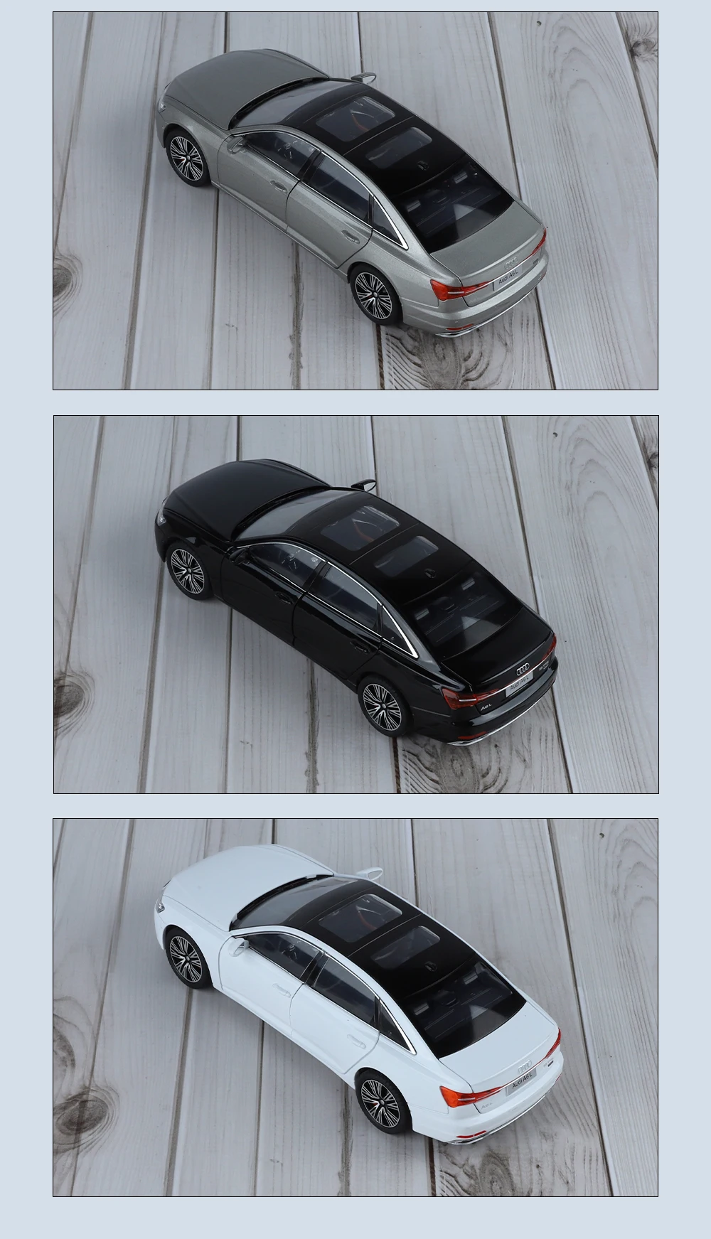 Beyond its allure as a collectible, this Audi A6 diecast model serves as an engaging hobby item and a striking decoration piece for your home or office. Its compact 1:24 scale size fits seamlessly into displays, collections, or as a standalone ornament, capturing attention and igniting conversations. Ideal for Christmas, birthdays, or any occasion, this model exhibits the grandeur of Audi in a form that’s both discreet and satisfying. Witness the perfect blend of artistic craftsmanship and engineering precision with this must-have miniature car model.