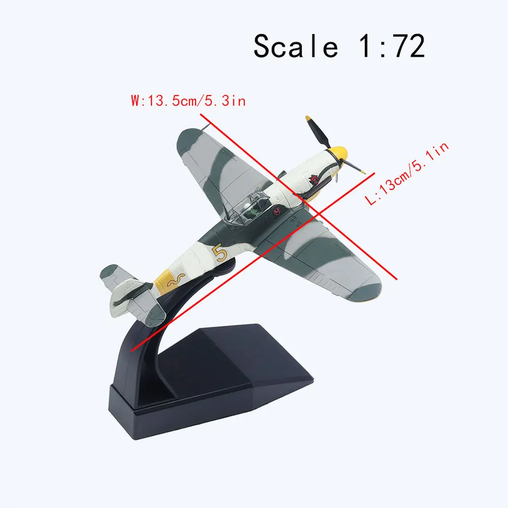 1/72 BF-109 Diecast Airplane Model Military Fighter Plane Aircraft Models for Gift