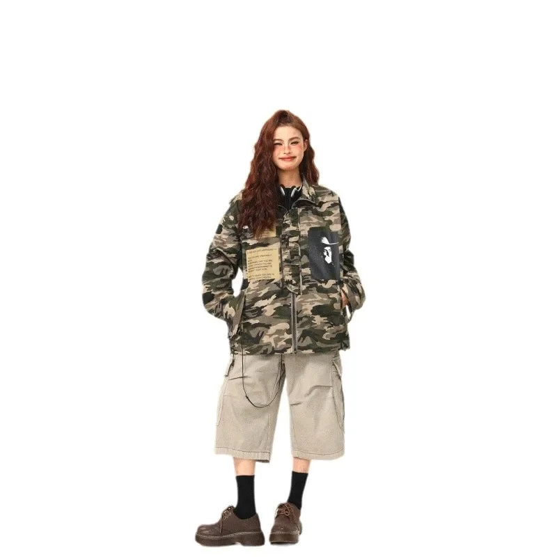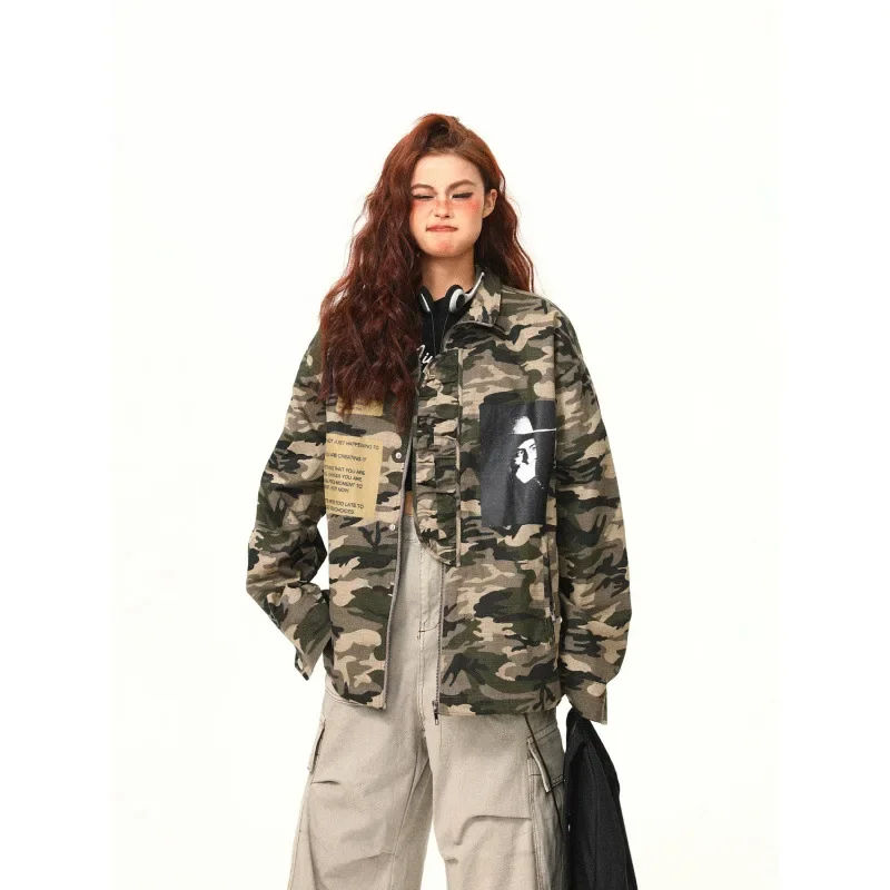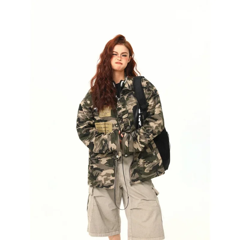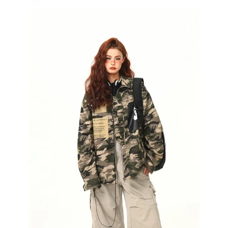 Original Canvas Workwear Jacket Zipper Stand Collar Street Hip Hop Camouflage Pattern American Retro Style Women's Outerwear