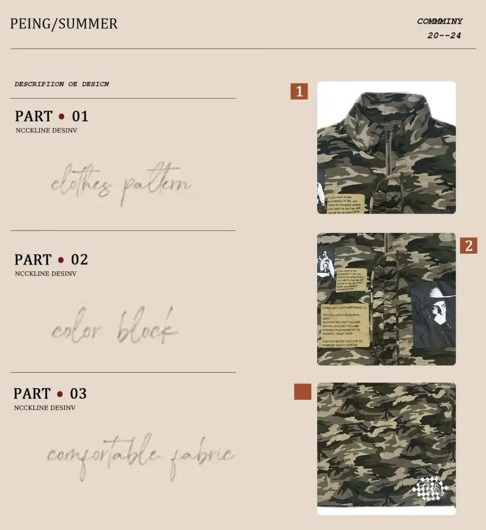 • Camouflage Pattern: An eye-catching design that redefines the boundaries between urban chic and adventurous spirit.