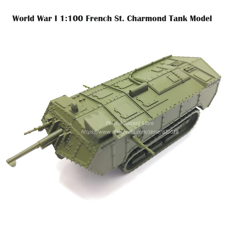 Discover the elegance and power of the historical St. Charmond tank model, a highly detailed 1:100 scale replica meticulously crafted to appeal to avid collectors and military enthusiasts. This French tank collectible pays homage to the remarkable engineering feats of World War I, offering a stunning centerpiece for your collection that captures the essence of early 20th-century battlefield innovation.