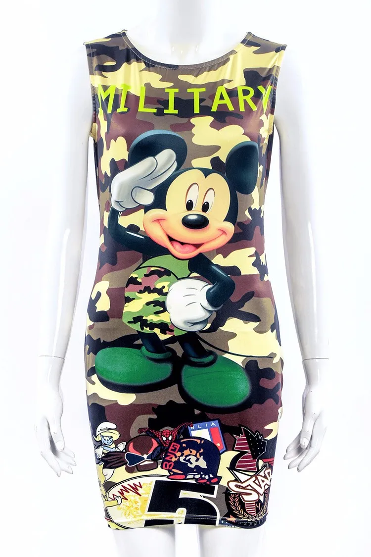 Overview of the Sleeveless Camouflage Cartoon Mouse Military Mini Dress