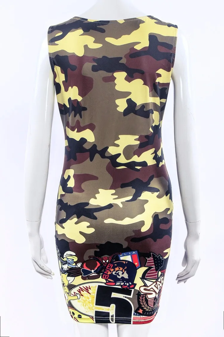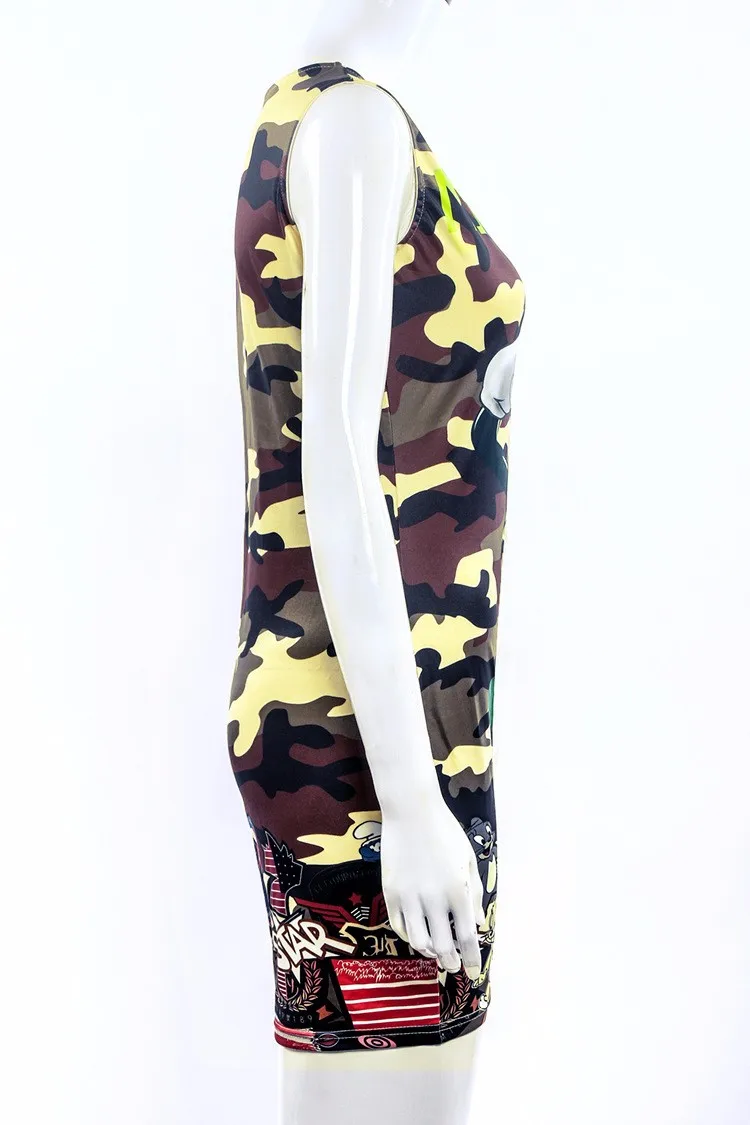 Overview of the Sleeveless Camouflage Cartoon Mouse Military Mini Dress