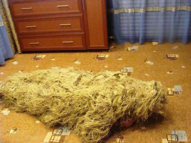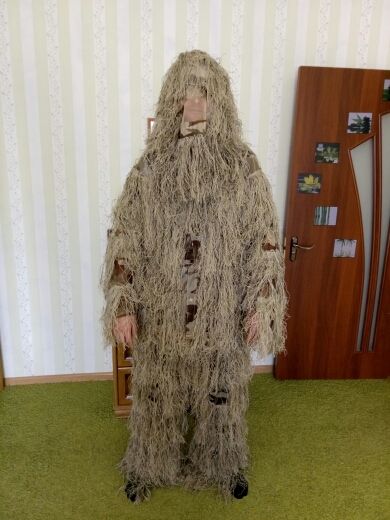 color dry herb. suit overall bad, but not cover thick preview as. after try hunting goose shell photo's field. but as seem is not exactly same with our расцветка straw. лохмотья may have additional hemming. i am so included on disguise understood the gun, but it is matte обмотать gun and have extra лысая cloth not to блестело. поволжье come to order within 16 days. overall молодец store.