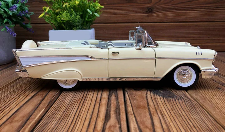 Our collectible scale model car stands out with its impeccable craftsmanship and impressive features that replicate the allure of the original convertible. The model includes an opening hood, offering a glimpse into a miniaturized engine bay that highlights the intricate details car enthusiasts appreciate.