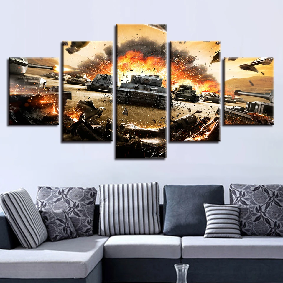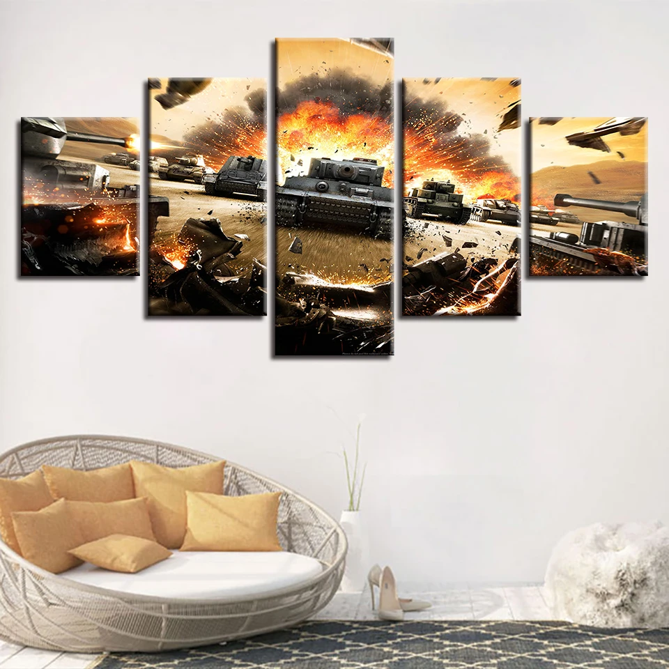Immerse yourself in the rich tapestry of history with our World War 2 Tanks Painting Canvas Wall Art Modular Poster Frame. This exceptional artwork is more than just a piece of decoration—it’s a window into the past, capturing the essence of military prowess and strategy. Perfect for military enthusiasts and lovers of historical wall decorations, this piece brings the battlefields of yore into your living space.